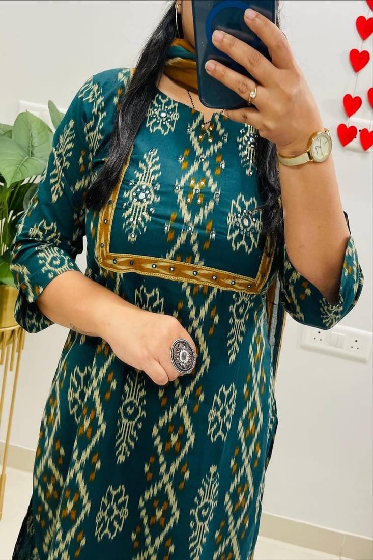 | Product Description | Enhance Your Ethnic Wardrobe With This Floral Embroidered Pure Cotton Kurta, Trouser & Dupatta Set, Crafted For Women Who Value Timeless Elegance And Breathable Comfort. Made From 100% Pure Cotton, This Beautifully Coordinated Set Features Delicate Floral Embroidery That Adds A Refined, Handcrafted Appeal. The Kurta Offers A Flattering Silhouette, Paired With Comfortable Trousers And A Matching Dupatta For A Complete Ethnic Look. Lightweight And Skin Friendly, This Set Is Perfect For Daily Wear, Festive Occasions, Office Wear, Family Gatherings, And Summer Celebrations. ✅ Key Features (Bullet Points) Premium Pure Cotton Fabric: Soft, Breathable, And Lightweight Cotton Ensures All Day Comfort Elegant Floral Embroidery: Intricate Embroidery Enhances The Ethnic Charm And Premium Feel Complete 3 Piece Set: Includes Kurta, Matching Trouser, And Coordinating Dupatta Comfortable & Flattering Fit: Designed For Ease Of Movement And Graceful Drape Versatile Ethnic Wear: Ideal For Casual Wear, Office, Festive Events, And Special Occasions |