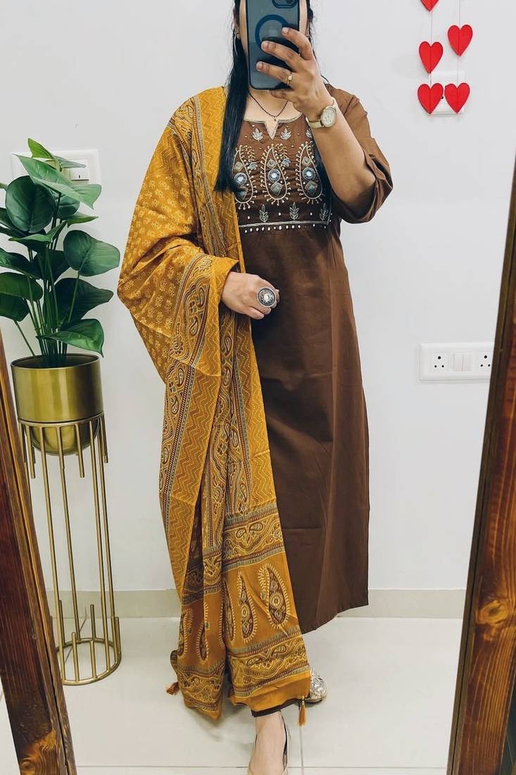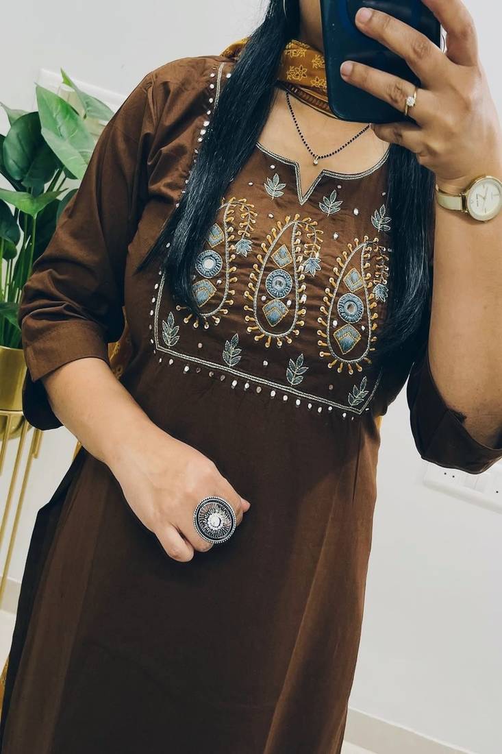 | Product Description | Enhance Your Ethnic Wardrobe With This Floral Embroidered Pure Cotton Kurta, Trouser & Dupatta Set, Crafted For Women Who Value Timeless Elegance And Breathable Comfort. Made From 100% Pure Cotton, This Beautifully Coordinated Set Features Delicate Floral Embroidery That Adds A Refined, Handcrafted Appeal. The Kurta Offers A Flattering Silhouette, Paired With Comfortable Trousers And A Matching Dupatta For A Complete Ethnic Look. Lightweight And Skin Friendly, This Set Is Perfect For Daily Wear, Festive Occasions, Office Wear, Family Gatherings, And Summer Celebrations. ✅ Key Features (Bullet Points) Premium Pure Cotton Fabric: Soft, Breathable, And Lightweight Cotton Ensures All Day Comfort Elegant Floral Embroidery: Intricate Embroidery Enhances The Ethnic Charm And Premium Feel Complete 3 Piece Set: Includes Kurta, Matching Trouser, And Coordinating Dupatta Comfortable & Flattering Fit: Designed For Ease Of Movement And Graceful Drape Versatile Ethnic Wear: Ideal For Casual Wear, Office, Festive Events, And Special Occasions |
