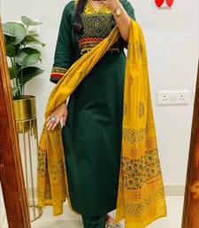 Green floral embroidered v neck pure cotton kurta trouser dupatta set