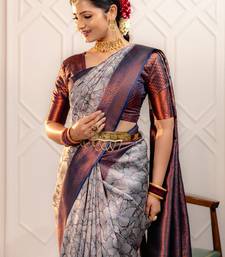 Gery soft art silk banarasi jacuard work designer party wear saree with unstitched blouse piece