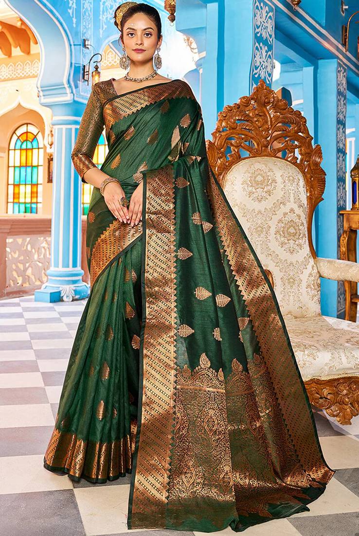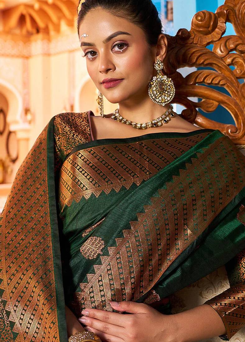 Green soft art silk banarasi saree with blouse