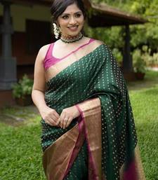 Green soft art silk banarasi saree with blouse