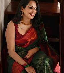 Grren red soft art silk blend banarasi jacuard work designer party wear saree with unstitched blouse piece