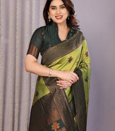 Lemon green soft art silk blend banarasi jacuard work designer party wear saree with unstitched blouse piece
