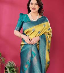 Lemon rama soft art silk blend banarasi jacuard work designer party wear saree with unstitched blouse piece