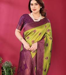 Lemon wine soft art silk blend banarasi jacuard work designer party wear saree with unstitched blouse piece