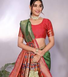 Light green soft art silk banarasi saree with blouse
