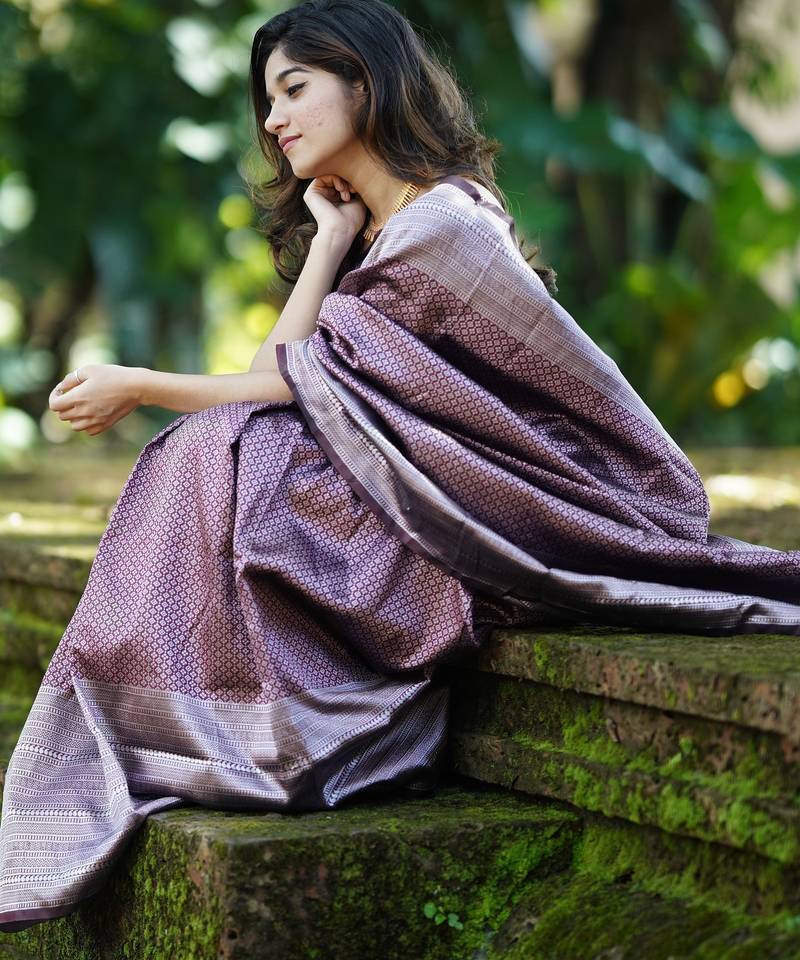 | Product Description | ✨ Product Highlights Fabric: Premium Banarasi Silk Blend Saree Length: 5.5 Meters Blouse: 0.8 Meter Running Blouse (Unstitched) Work: Intricate Woven Zari Motifs And Traditional Banarasi Patterns Finish: Smooth Texture With Elegant Sheen And Graceful Drape 🌸 Design Details The Saree Features A Soft Peach Base Adorned With Delicate Woven Motifs That Enhance Its Royal Charm. The Rich Wine Colored Border And Pallu Are Intricately Designed With Traditional Banarasi Zari Weaving, Adding Depth, Contrast, And Grandeur To The Overall Look. The Ornate Zari Work Reflects Classic Heritage Craftsmanship, Making This Saree Ideal For Festive Occasions, Weddings, Cultural Events, And Celebrations. 👗 Blouse Details Comes With A 0.8 Meter Running Blouse Piece In Matching Wine Shade, Allowing You To Customize Your Blouse Style As Per Your Preference — From Classic Traditional Cuts To Modern Designer Patterns. |