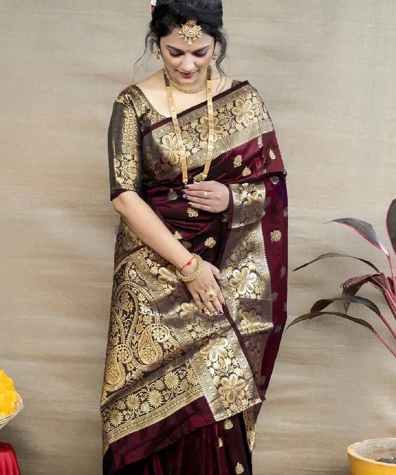 | Product Name | Maroon Soft Art Silk Banarasi Jacuard Work Designer Party Wear Saree With Unstitched Blouse Piece | |