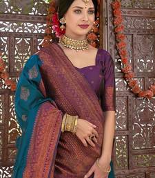 Morpich wine soft art silk blend banarasi jacuard work designer party wear saree with unstitched blouse piece