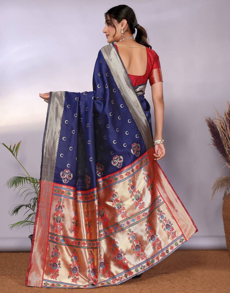Navy blue soft art silk banarasi saree with blouse