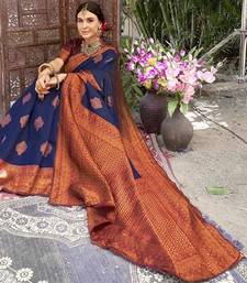 Neavy blue wine soft art silk blend banarasi jacuard work designer party wear saree with unstitched blouse piece