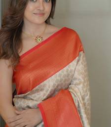 Off white soft art silk banarasi saree with blouse