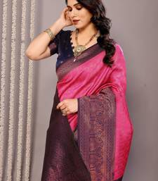 Pink neavyblue soft art silk blend banarasi jacuard work designer party wear saree with unstitched blouse piece