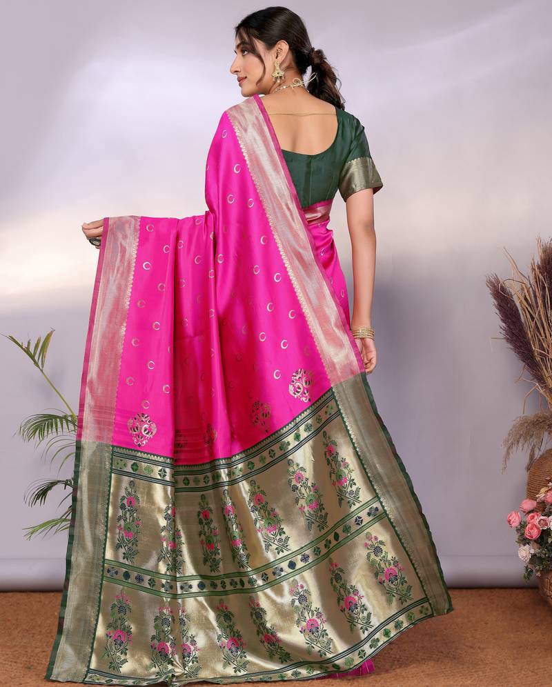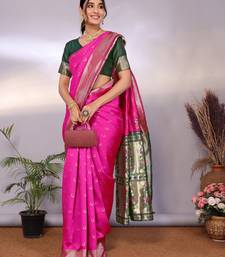 Pink soft art silk banarasi saree with blouse