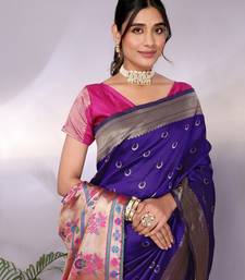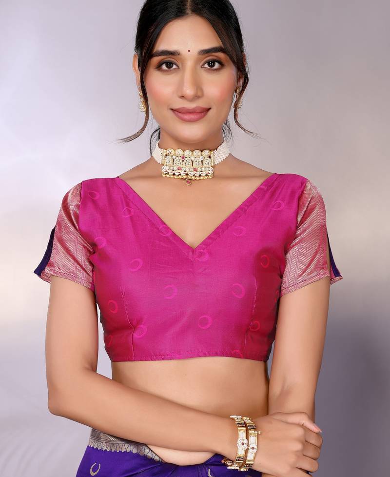 Purple soft art silk banarasi saree with blouse
