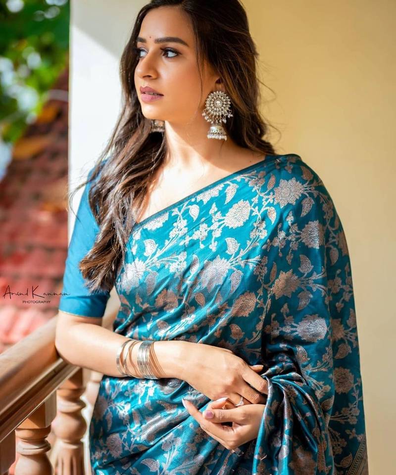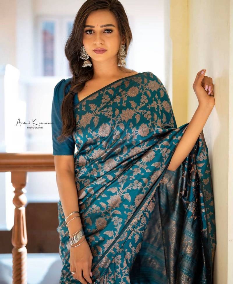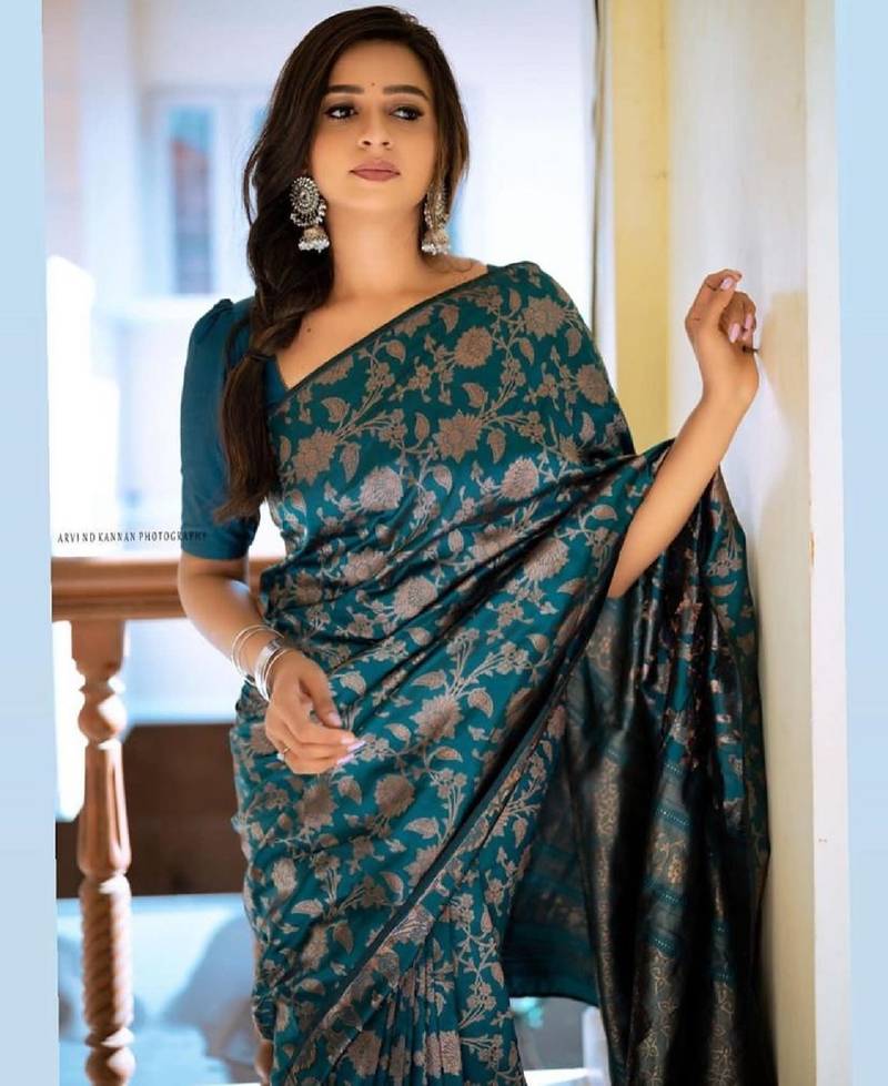 | • | Saree | : | Color- Turquoise / Fabric- Art Silk |