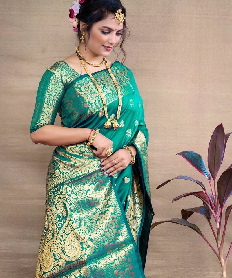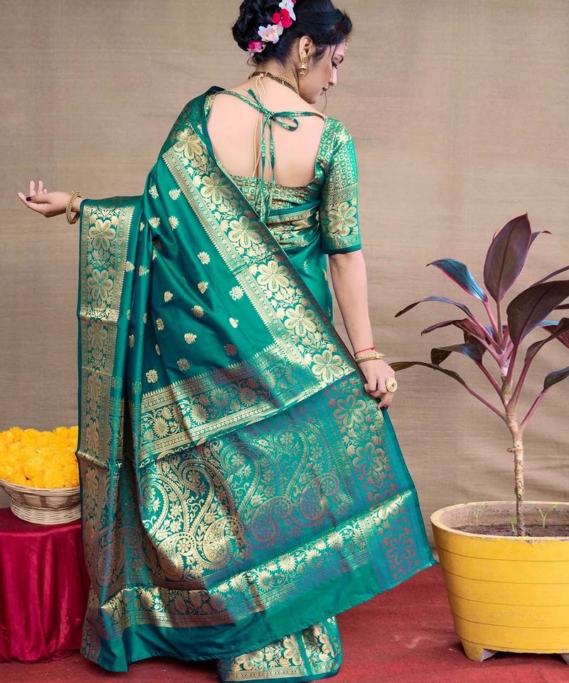 Rama soft art silk banarasi jacuard work designer party wear saree with unstitched blouse piece