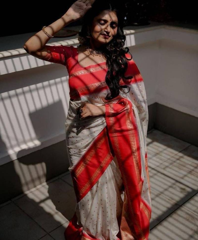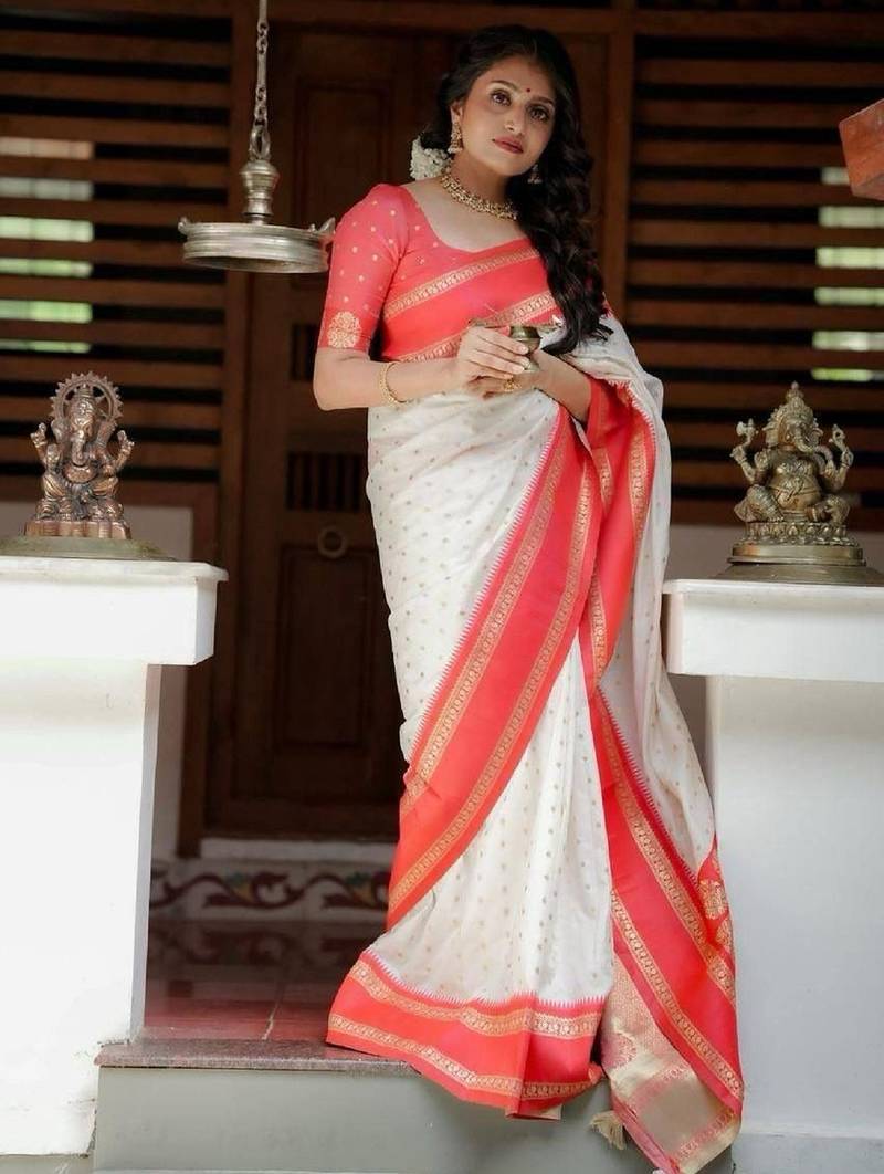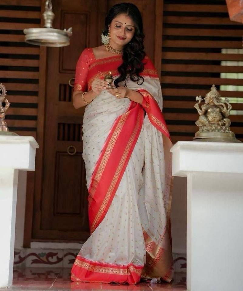 | Product Name | White Red Soft Art Silk Banarasi Jacuard Work Designer Party Wear Saree With Unstitched Blouse Piece | |