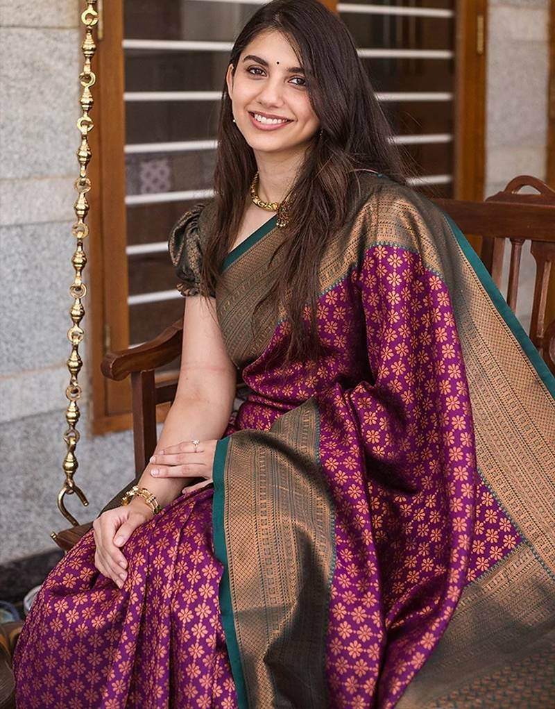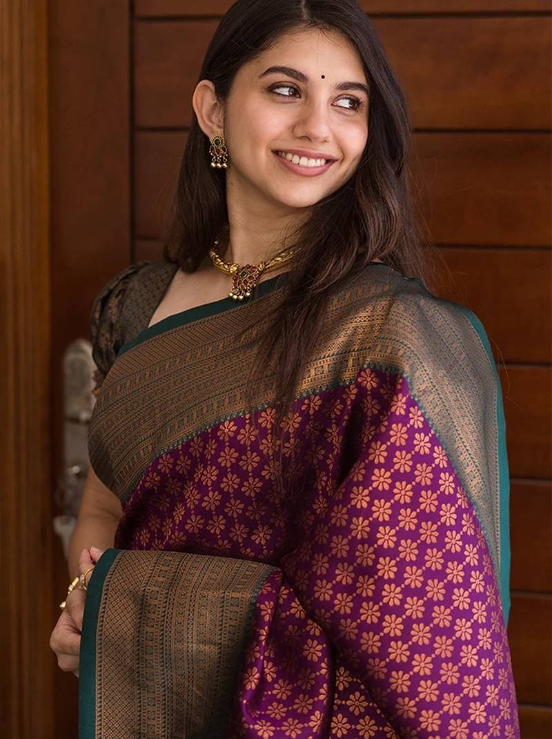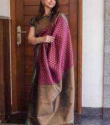 Wine soft silk banarasi saree with blouse