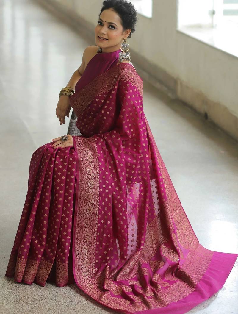 | Product Name | Wine Soft Art Silk Banarasi Jacuard Work Designer Party Wear Saree With Unstitched Blouse Piece | |