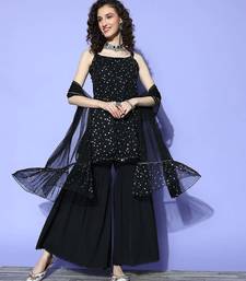 Black solid net kurta sets