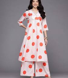 Off white printed cotton blend kurta sets