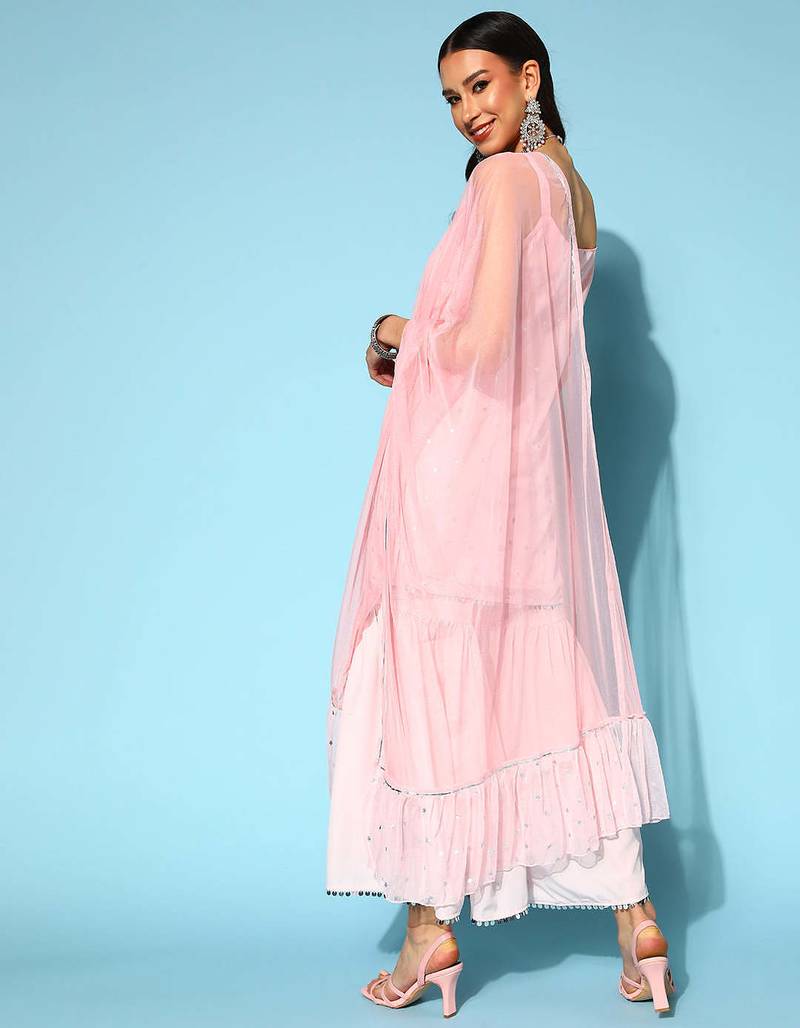 Product Name Pink Printed Poly Crepe Kurta Sets