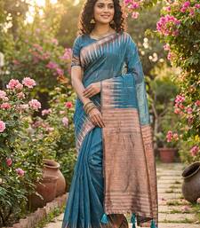 Blue elegant linen cotton saree – lightweight & comfortable ethnic wear