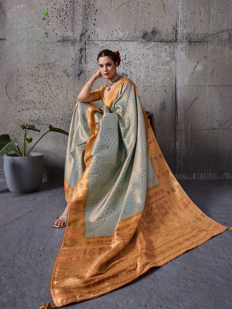 | Product Description | Premium Kanjivaram Silk Saree, Crafted For A Pure Heritage Feel. Featuring Heavy All Over Jaal And Kairi (Paisley) Meenakari Weaving, It Radiates Timeless Elegance |