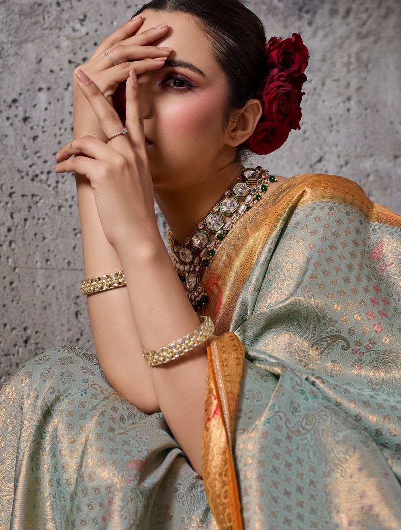 | Product Name | Blue Exquisite Premium Kanjivaram Silk Saree With Heavy Jaal & Kairi Meenakari Work | |