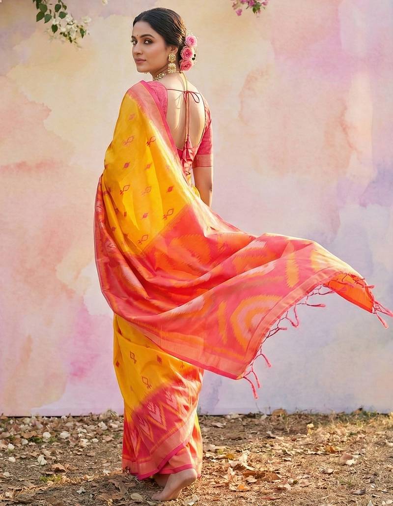 Dark yellow soft silk saree for women – elegant traditional & party wear saree