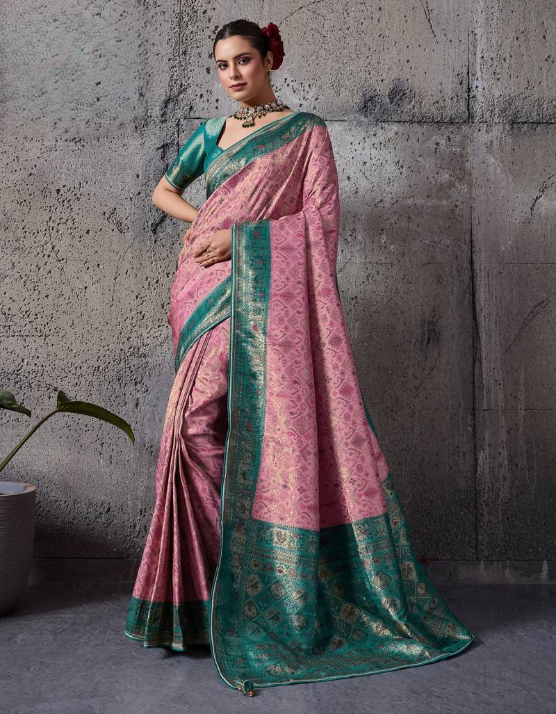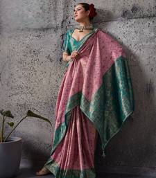 Light pink exquisite premium kanjivaram silk saree with heavy jaal & kairi meenakari work