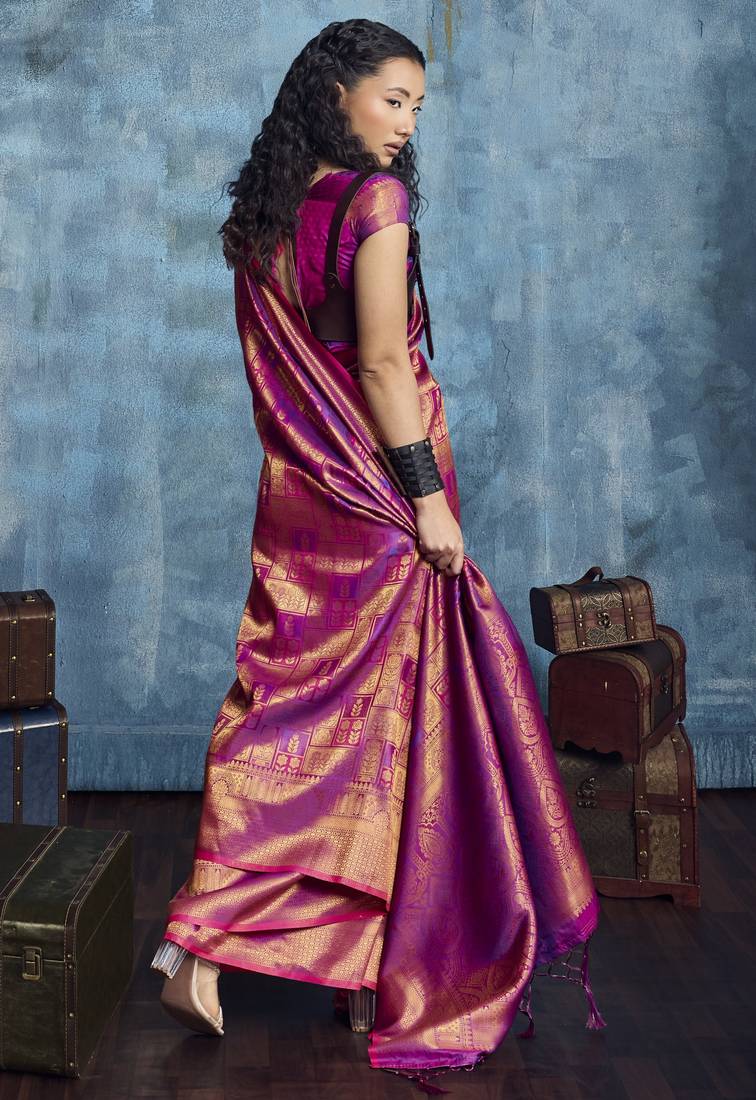 Magenta elegant handloom weaving art silk saree with matching art silk blouse – traditional festival