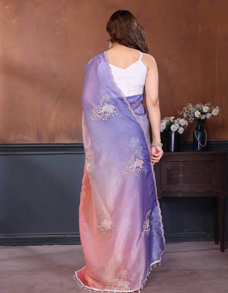 | Product Name | Peach Lavender Gold Crush Art Silk Embroidery Work Saree With Multi Tone Design & Roto Banglory Art Silk Blouse | |