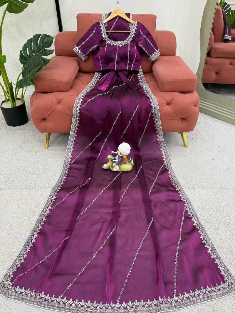 Wine designer heavy jmc art silk embroidered saree with sequin work blouse – party & festive wear