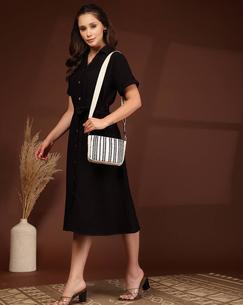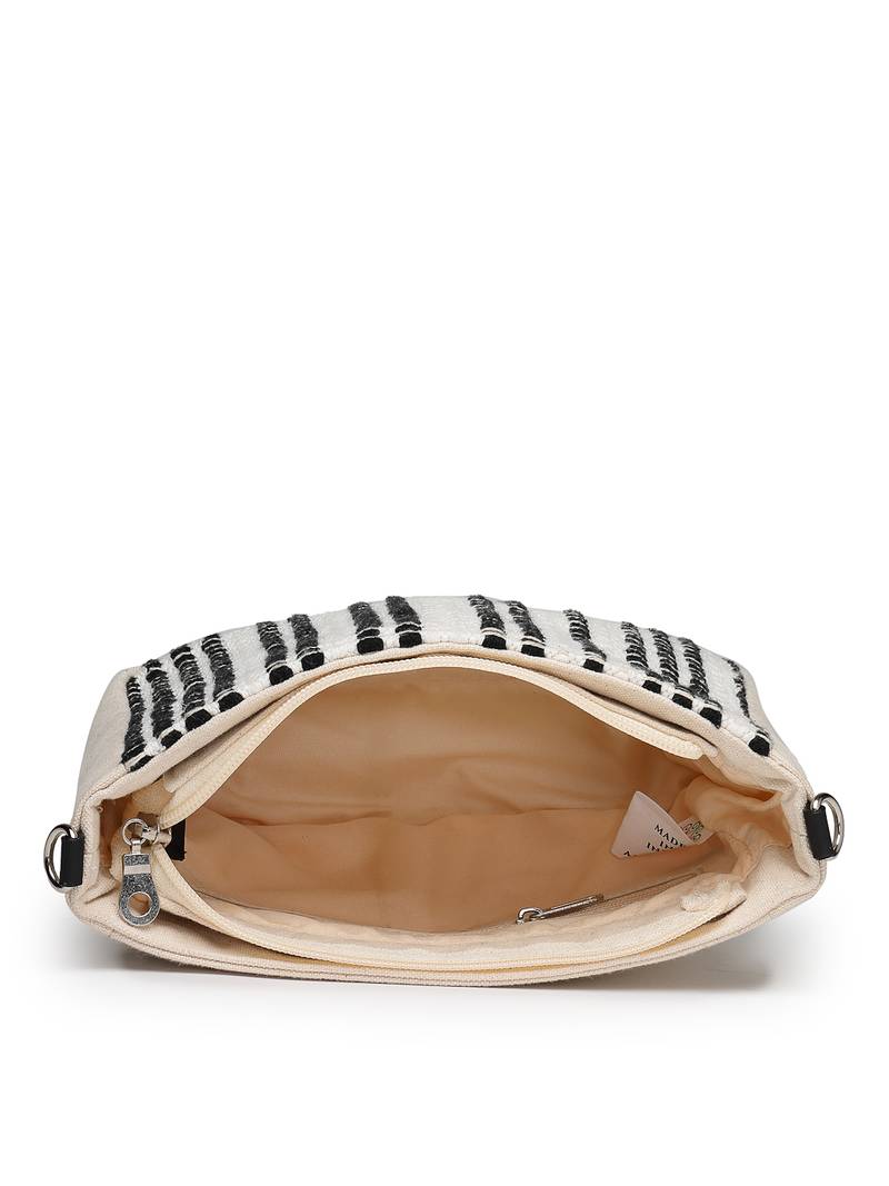 Anekaant Earth Edit Off White & Black Jacquard Striped Sling Bag