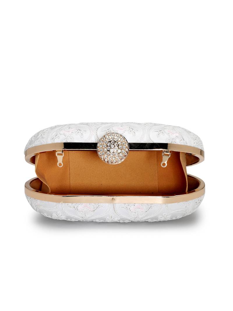 Anekaant Woven Reverie White Faux Silk Floral Vine Embroidered Clutch