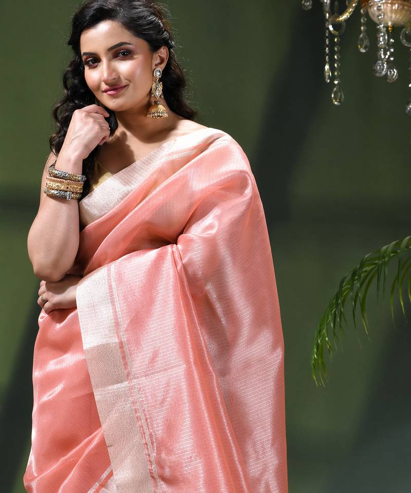 | Product Description | Add A Touch Of Elegance To Your Ethnic Collection With This Kora Tissue Silk Saree. Crafted To Reflect Timeless Grace And Modern Sophistication. Designed For Women Who Love Subtle Luxury, This Saree Blends The Sheer Charm Of Tissue Saree Textures With The Richness Of Kora Silk Sarees, Making It Perfect For Festive And Celebratory Occasions. Inspired By Traditional Weaves, This Saree Carries The Finesse Of Kora Banarasi Sarees For Women While Maintaining A Lightweight And Graceful Drape. The Soft Shimmer And Delicate Structure Make It An Ideal Saree For Farewell, Evening Celebrations, And Special Gatherings. Whether Styled As A Party Wear Saree Or Worn For A Wedding Function, It Creates An Effortlessly Royal Look. This Versatile Design Complements Multiple Occasions, Pairing Beautifully With Styles Like Organza Sarees For Women Latest Design, Georgette Sarees, Chiffon Saree, And Fancy Sarees. It Appeals To Lovers Of Classic Elegance, Similar To Kanjivaram Saree, Art Silk Saree, And Refined Banarasi Saree For Women Aesthetics. Perfect For Women Seeking Sarees For Women Latest Design, This Saree Suits Festive Parties, Farewell Events, And Cultural Functions. It Blends Well With Contemporary Trends Such As Partywear Sarees, Embroidered Saree, And Ready To Wear Saree Party Wear, While Still Holding The Charm Of Traditional South Indian Saree And Kerala Saree For Women Styles. An Excellent Choice For Those Who Admire Silk Wedding Saree, Black Saree Party Wear, And Party Wear Fancy Sarees For Women Latest Design, This Kora Tissue Silk Saree Adds Elegance, Confidence, And Timeless Beauty To Every Moment. |