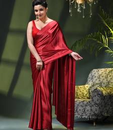 Soft satin silk saree one color solid design satin sari crepe farewell saree for women