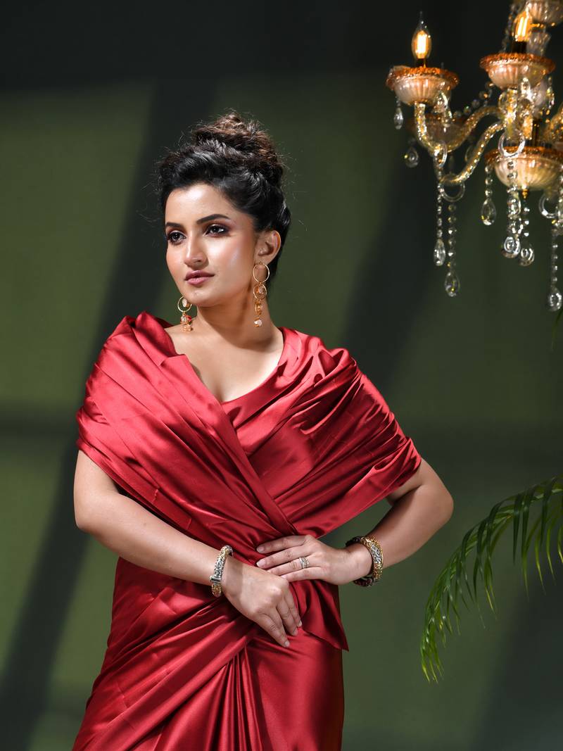 | • | Saree | : | Color- Maroon / Fabric- Satin |