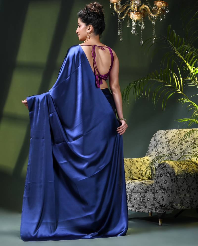 | • | Saree | : | Color- Royal Blue / Fabric- Satin |