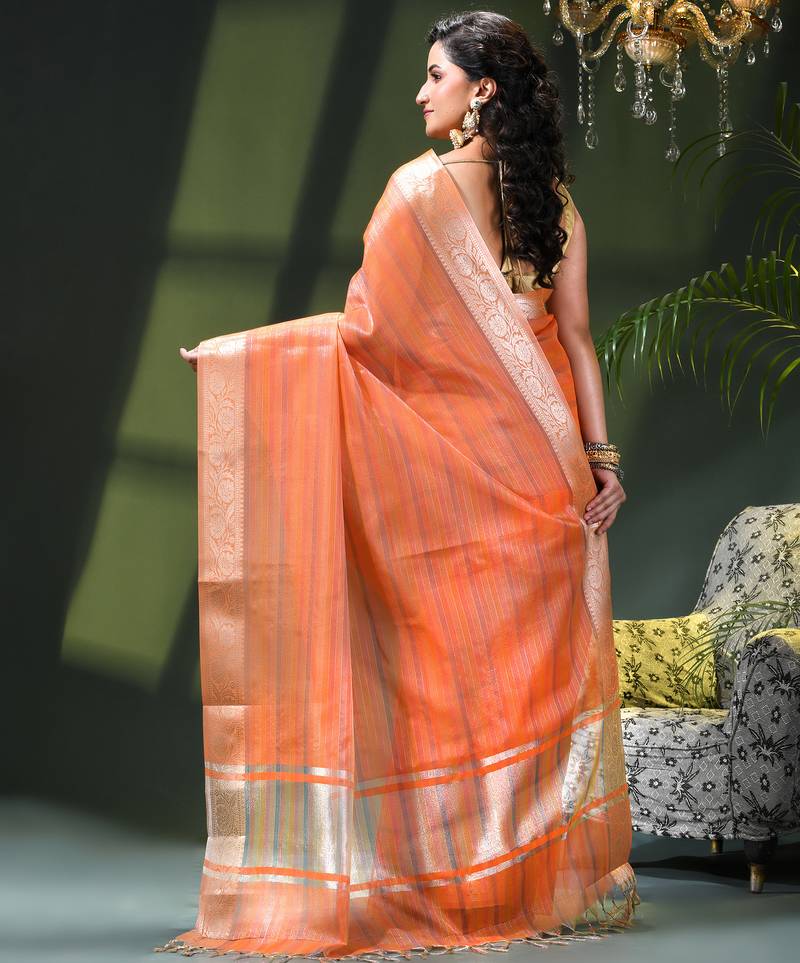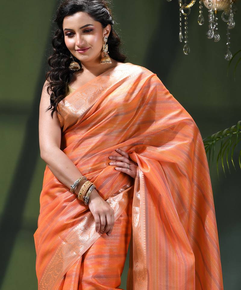 | Product Name | Tissue Silk Stripped Orange Festive Saree | |