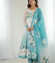 Pure soft organja silk fully flair kali and canvas patta with duppta set ,pent ready to wear stitched