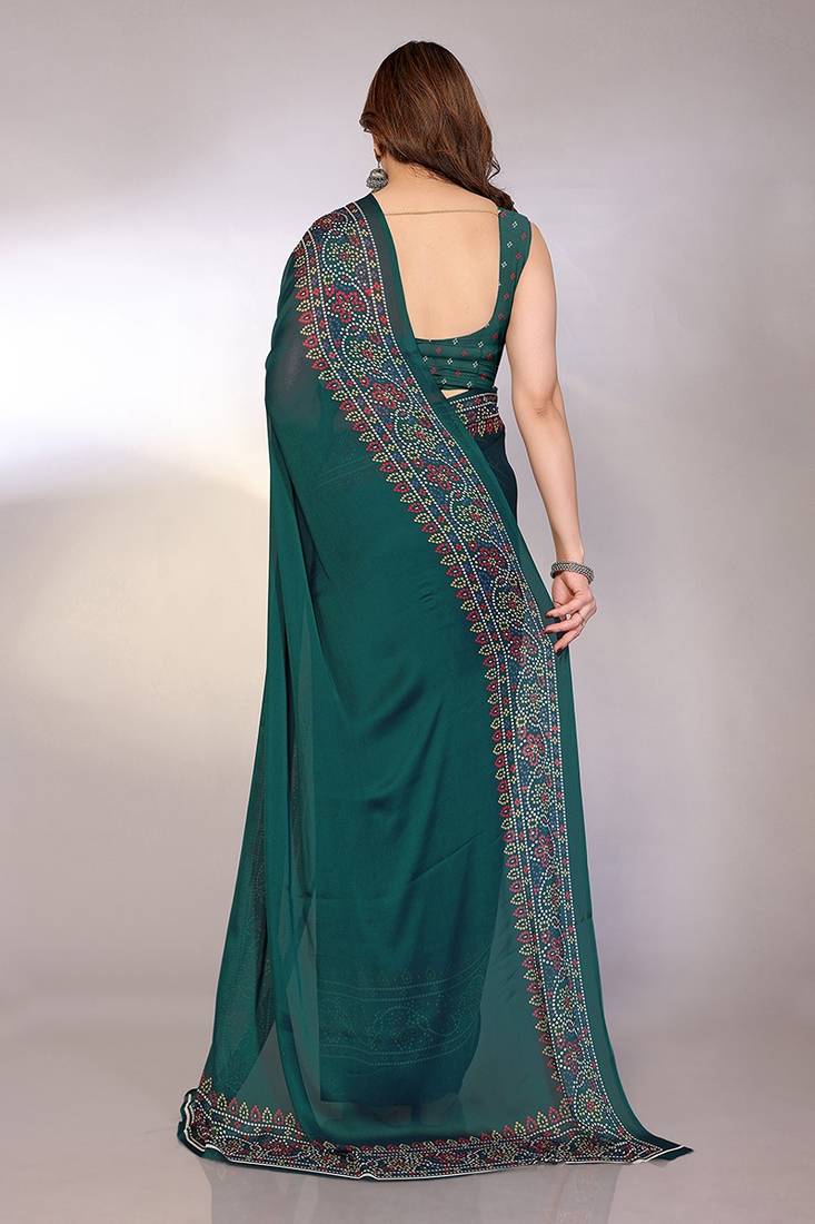 | Product Name | Green Printed Bandhani Chiffon Self Design Saree With Blouse | |