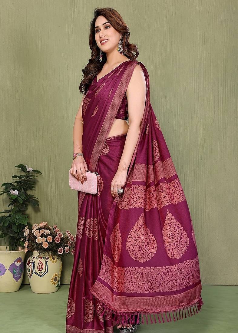 | Product Name | Wine Printed, Blocked Daily Wear Chiffon Georgette Saree With Blouse | |