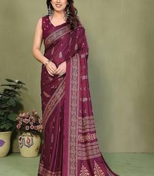 Wine printed, blocked printed daily wear chiffon, georgette saree with blouse