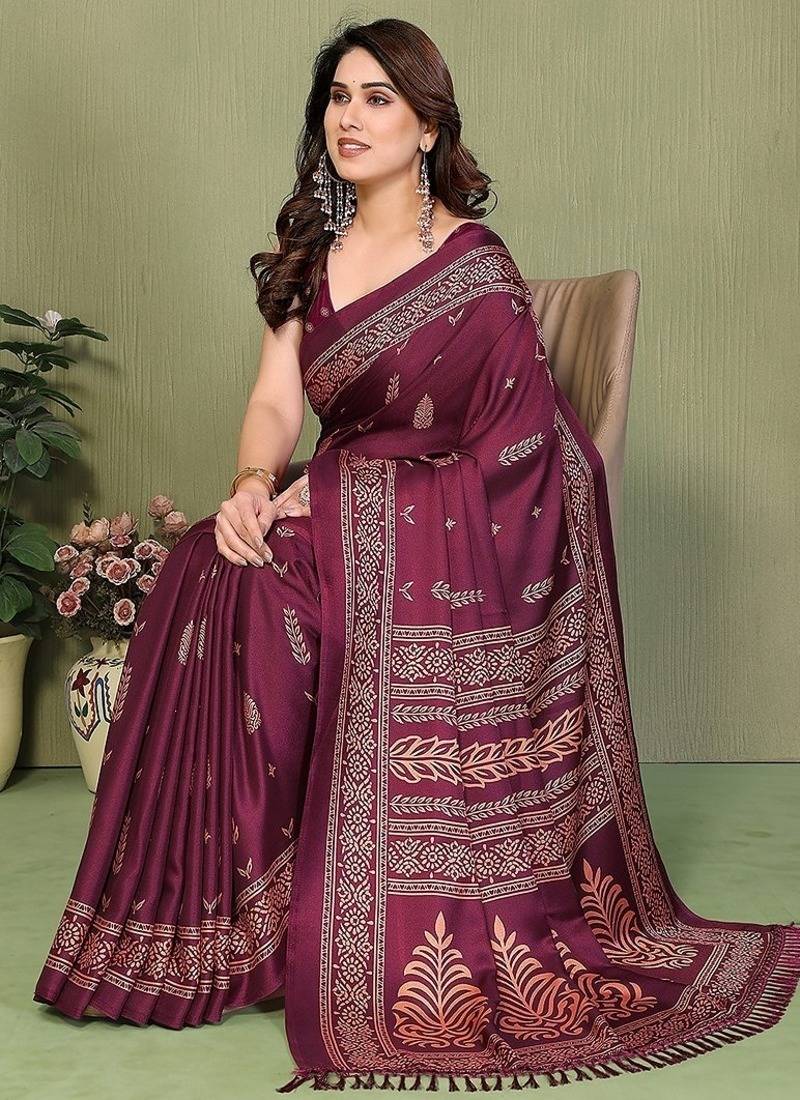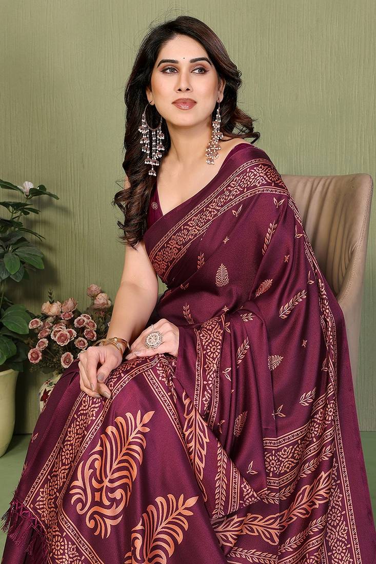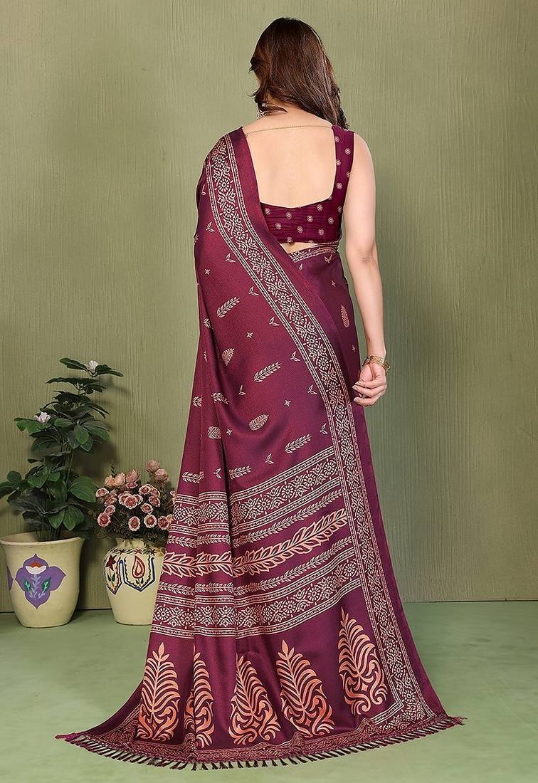 | Product Name | Wine Printed, Blocked Printed Daily Wear Chiffon, Georgette Saree With Blouse | |