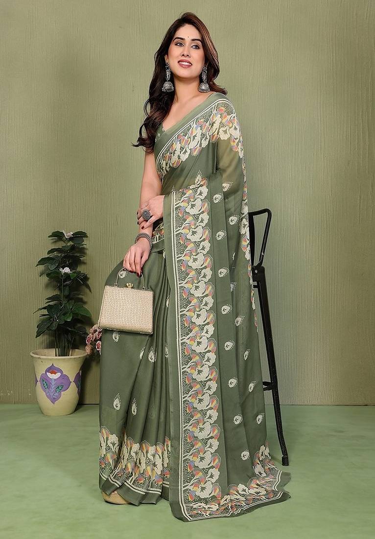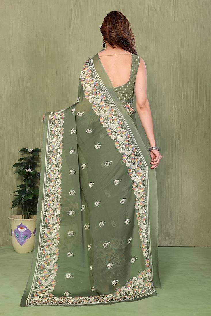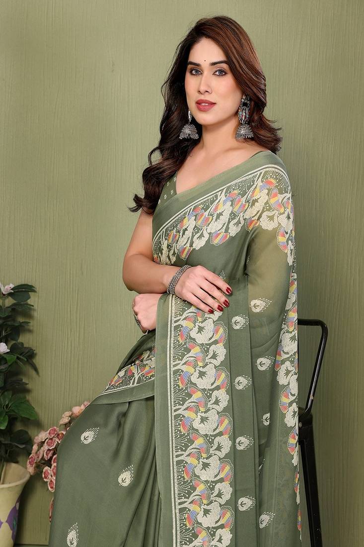 | Product Name | Olive Printed, Blocked Printed Hand Batik Chiffon, Georgette Saree With Blouse | |