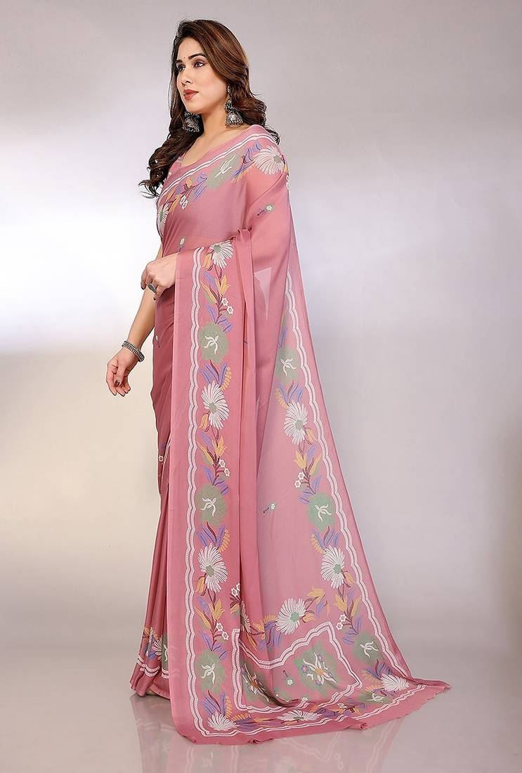 | Product Description | An Elegant Saree Crafted In A Lightweight, Flowy Fabric That Drapes Effortlessly. Adorned With Delicate Floral Prints In Soft Coral And Off White Hues, The Saree Features A Broad, Beautifully Detailed Border And A Gracefully Printed Pallu. The Subtle Sheen And Airy Texture Add To Its Refined Charm, While The Matching Printed Blouse Completes The Look. Perfect For Office Wear, Casual Gatherings, Daytime Events, Or Light Festive Occasions, This Saree Offers A Timeless Blend Of Comfort And Understated Elegance. |
